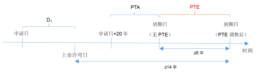 - 当D1-PTA≤6年时,专利无法获得PTE;