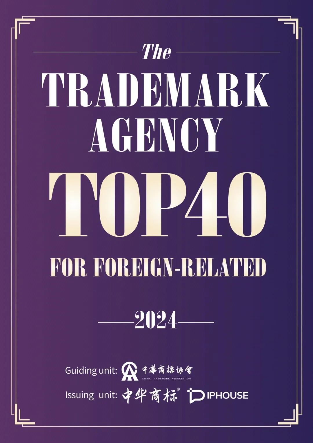 2024年5月20日(当地时间),在美国亚特兰大举办的第146届INTA年会中,中华商标协会论坛发布了《涉外商标代理机构服务能力Top40榜单》,该榜单在中华商标协会指导下,由《中华商标》杂志社和知产宝联合发布。