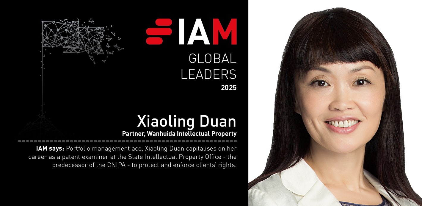 Ms. Xiaoling Duan, Partner of Wanhuida Intellectual Property, makes her debut in the IAM Global Leaders 2025. Ms. Duan is lauded as a “portfolio management ace”, who capitalizes on her career as a patent examiner to protect and enforce clients’ rights.