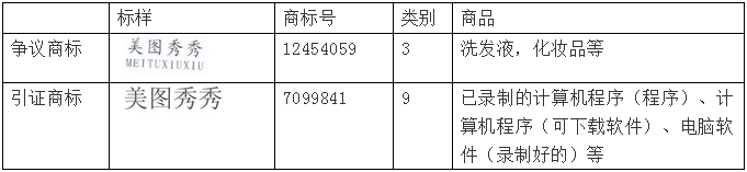 美图网公司于2015724日对贝荣雄注册的“美图秀秀meituxiuxiu”商标提出无效宣告。201681日商评委完成审理裁定“美图网公司第7099841号“美图秀秀”使用在“已录制的计算机程序(程序)、计算机程序(可下载软件)、电脑软件(录制好的)”商品上的驰名商标。争议商标构成对引证商标的复制、摹仿。争议商标在化妆品、牙膏等商品上的使用,不正当地借用了引证商标的知名度,易使相关公众混淆或认为与申请人直接存在某种关联,致使申请人的利益可能收到损害。根据《商标法》第十三条第三款、第四十五条第一款、第二款和第四十六条的规定,争议商标予以无效。