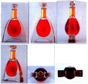 首先,在立体商标和侵权产品的近似程度方面,首先要明确立体商标的保护范围,而且应当在整体比对的基础上,对显著特征较强的部分重点比对。以马爹利至尊产品对应的立体商标为例(图二),该商标是由瓶盖、圆筒状瓶颈、水滴状的瓶身组成,正面整体呈现为一个底部带拱形,两腰略有外凸弧度的等腰三角形。瓶体的中间部分是一个以瓶身中心线为轴线的水滴形对称图形。而进行比对时,在侵权产品整体和重要部分高度近似的情况下,一些细微差异将不足以影响相关公众对瓶体形状的识别性认知。