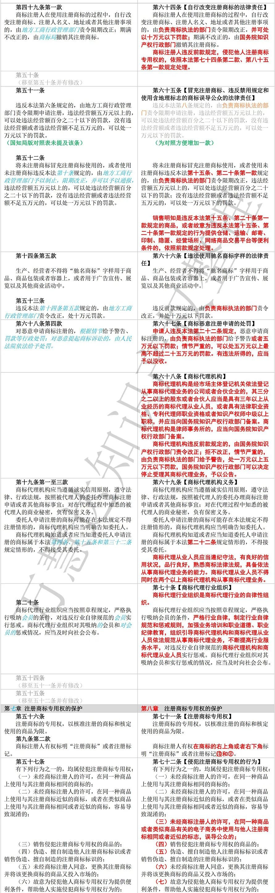对照表|《中华人民共和国商标法》(征求意见稿)