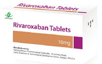 2、被控侵权人在其网站“产品中心”栏目宣传利伐沙班片剂及利伐沙班原料药,同时展示了产品包装盒和包装瓶,在包装盒图片上清楚地标注有产品规格、注册商标及生产厂家信息;如下图所示: