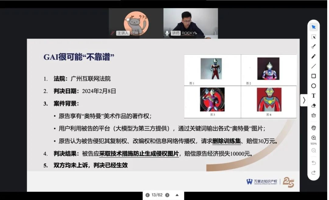 万慧达知识产权律师芦爽作为讲师参加“人工智能知识产权法律问题和实物能力提升”线上培训班