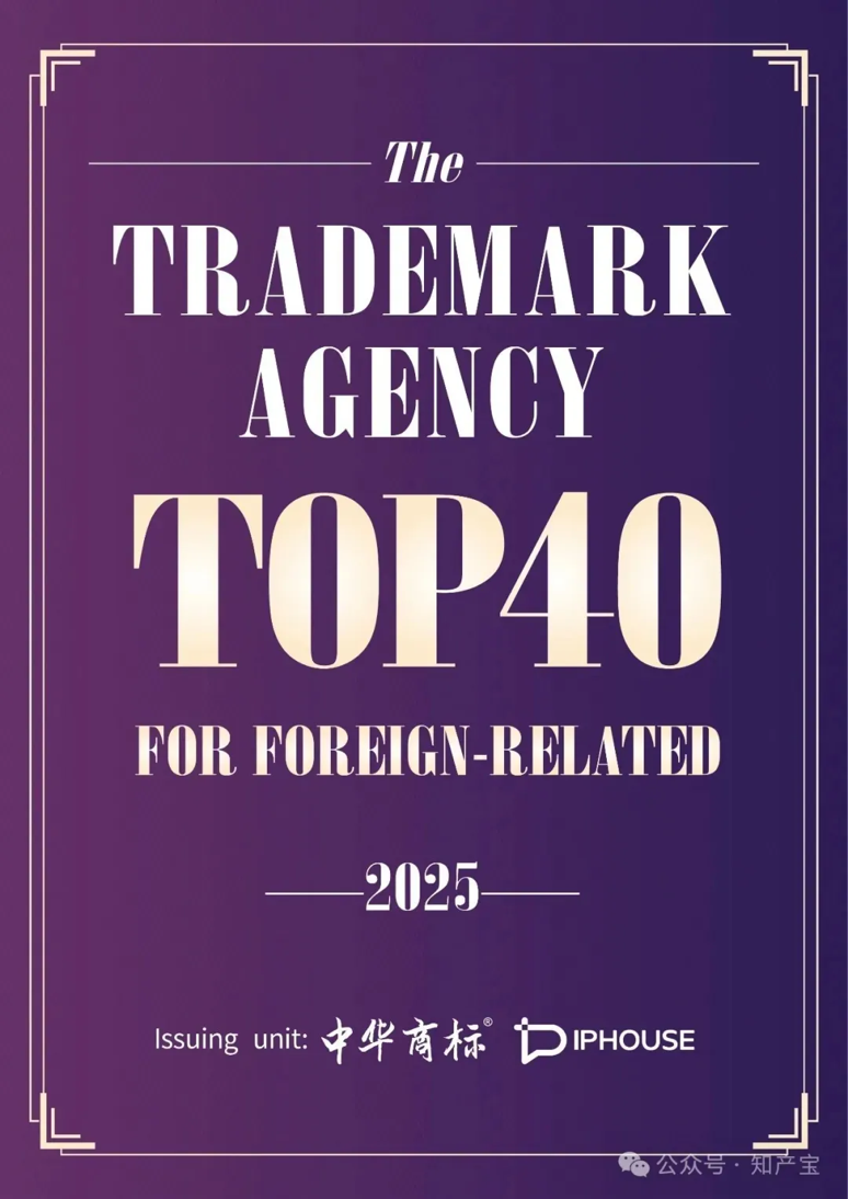 On Monday May 19th, 2025, under the auspices of the China Trademark Association, the China Trademark Magazine and IPHOUSE, a leading innovation and compliance data supplier in China, jointly release the List of Top 40 Foreign-related Chinese Trademark Agencies in 2025, during the 147th annual meeting of the International Trademark Association.