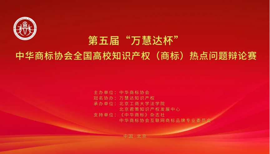 6月7日,第五届“万慧达杯”中华商标协会全国高校知识产权(商标)热点问题辩论赛决赛在北京工商大学(阜成路西校区)圆满落幕。本届辩论赛由中华商标协会主办,万慧达知识产权冠名协办,北京工商大学法学院和北京君策知识产权发展中心承办,《中华商标》杂志社和中华商标协会互联网商标品牌专业委员会共同作为支持单位。