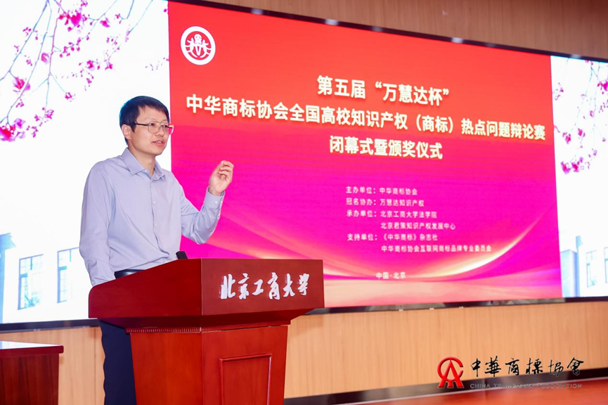 中华商标协会副秘书长、《中华商标》杂志社社长张豫宁在闭幕致辞中表示,自2019年创办以来,“万慧达杯”全国高校知识产权辩论赛已成为推动知识产权教育与实务融合的重要平台,参赛选手围绕前沿议题展开思辨交锋,生动实践了协会推动知识产权教育普及的宗旨。赛事规模从首届16所高校扩大到本届32所,累计吸引超百支队伍、千余名学生参与,覆盖全国20余省市。本届赛事创新采用“直通16强”与“16强争夺赛”双轨并行的科学选拔模式,并首次通过微信视频号对每轮赛事进行全程直播,累计吸引超2.3万人次观看,显著提升了赛事影响力。他介绍到,中华商标协会作为商标领域全国性专业社团、商标代理行业组织,高度重视人才培养工作。为顺应国家对知识产权人才的迫切需求,协会除举办了五届辩论赛外,还组织了四届商标热点问题征文比赛,成立了人才与教育专业委员会,上线商标人才库等,得到了国家知识产权局等各方的关注和肯定。高校是知识产权人才培养的摇篮,协会将持续深化与高校合作,通过学术交流等活动推动知识产权理论与实践深度融合,为行业发展注入了新鲜血液。最后,他向获奖的中央财经大学法学院、同济大学上海国际知识产权学院表示祝贺,并对本届赛事的冠名和承办单位表示感谢。