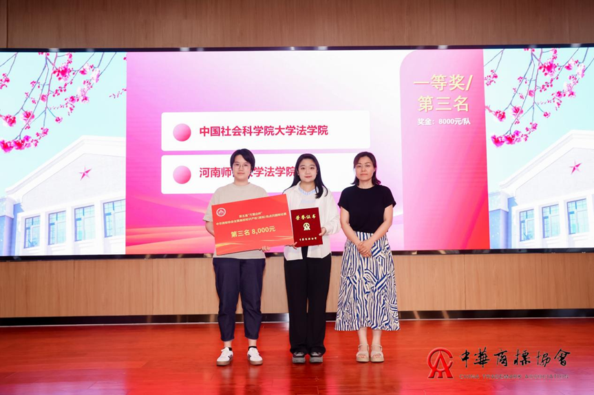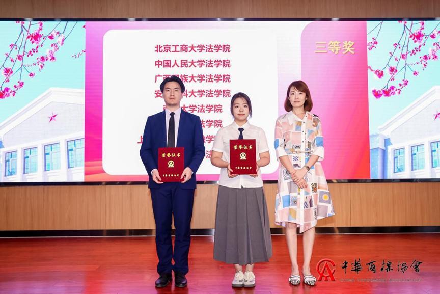 北京工商大学法学院院长陈敦、中华商标协会会长助理马岩岩分别为并列“第三名”的河南师范大学法学院和中国社会科学院大学法学院颁奖