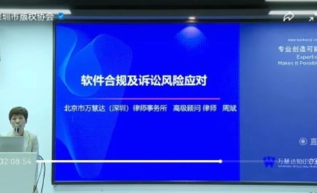 Wanhuida Senior Associate speaks at copyright training sessi...Oct 21 2022Wanhuida Senior Associate speaks at copyright training session in ShenzhenOn 21st October 2022, under the auspices of Shenzhen Intellectual Property Office, the “Training Session on Corporate Utilisation of Copyrighted Software in Shenzhen”, which is organized by Shenzhen...Oct 21 2022 -